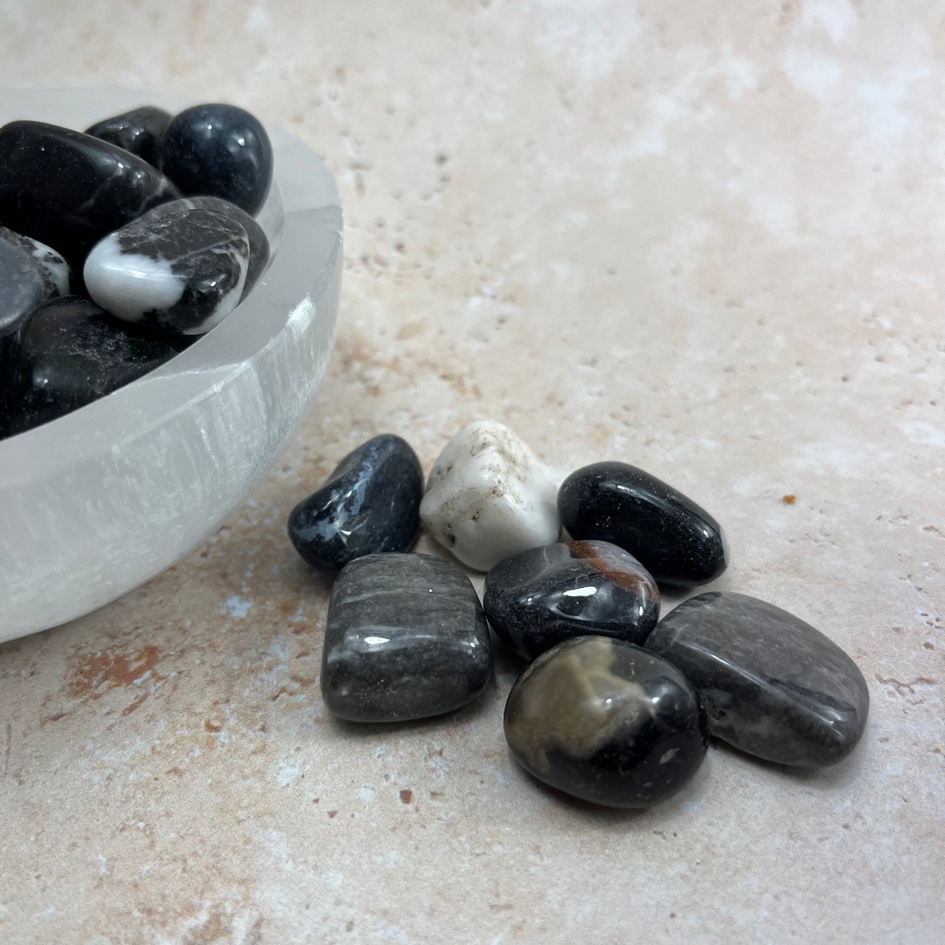 Feel inspired to take action with this vibrant Zebra Jasper Tumble Stone. Its striking black and white bands motivate, encouraging us to embrace living and avoid over-thinking. A powerful reminder to just enjoy the journey.